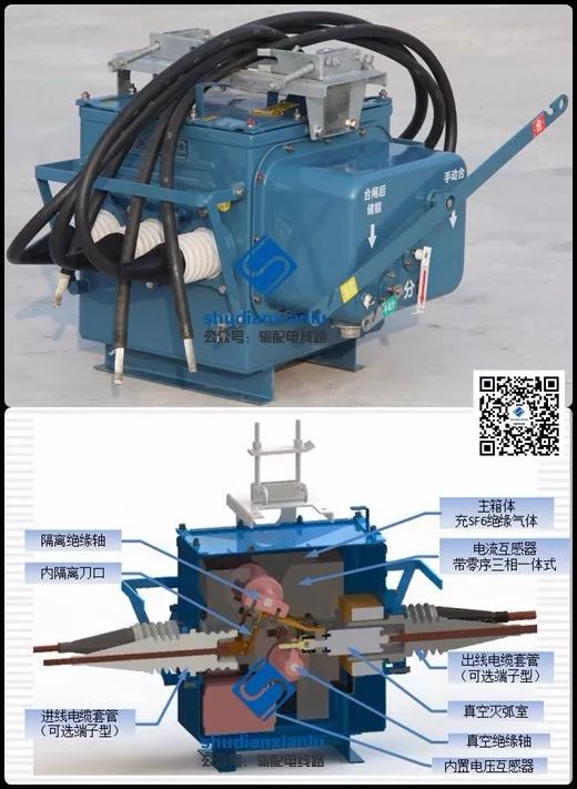 ▲ 柱上真空斷路器(真空滅弧,SF6絕緣)