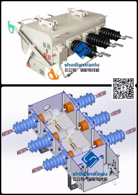 另外采用用柱上SF6負荷開關液不少。SF6負荷開關采用SF6滅弧,SF6絕緣,三相共箱式,電流互感器可內置,電纜或端子出線,外側可選配隔離裝置,吊式或坐式安裝。如下圖所示: