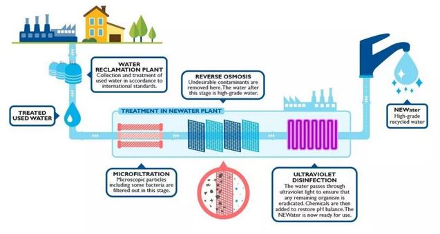 NEWater是指城市污水經過常規二級處理后,再經過反滲透處理等工藝所獲得的達到飲用水標準的新生水。